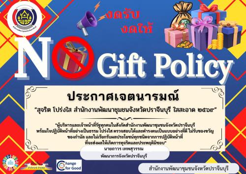 "ผู้บริหารและเจ้าหน้าที่รัฐทุกคนในสังกัดสำนักงานพัฒนาชุมชนจังหวัดปราจีนบุรี พร้อมใจปฏิบัติหน้าที่อย่างเป็นธรรม โปร่งใส ตรวจสอบได้และดำรงตนเป็นแบบอย่างที่ดี ไม่รับของขวัญ ของกำนัล และไม่เรียกรับผลประโยชน์ทุกชนิดจากการปฏิบัติหน้าที่ ที่จะส่งผลให้เกิดการทุจริตและประพฤติมิชอบ"