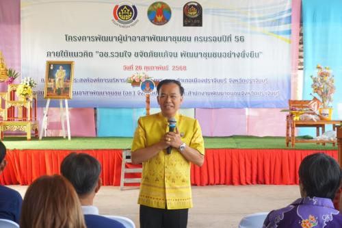 🔸🔸นายชนาธิป โคกมณี รองผู้ว่าราชการจังหวัดปราจีนบุรี เป็นประธานในพิธีเปิดกิจกรรมเนื่องในวาระครบรอบ 56 ปี โครงการพัฒนาผู้นำอาสาพัฒนาชุมชน ประจำปี 2568 ภายใต้แนวคิด "อช.รวมใจ ขจัดภัยแก้จน พัฒนาชุมชนอย่างยั่งยืน" โดยมีหัวหน้าส่วนราชการ เจ้าหน้าที่พัฒนาชุมชน ผู้นำอาสาพัฒนาชุมชน (ผู้นำ อช.) อาสาพัฒนาชุมชน (อช.) รวมทั้งสิ้น 175 คน กิจกรรมในงานประกอบด้วย พิธีทอดถวายผ้าป่า กิจกรรมแลกเปลี่ยนเรียนรู้การปฏิบัติงานภารกิจของอช./ผู้นำอช. มอบประกาศเกียรติคุณแก่ผู้นำอาสาพัฒนาชุมชนดีเด่น จำนวน 14 คน กิจกรรมทำปุ๋ยหมักจากฟางข้าว เพื่อรณรงค์การลดการเผาฟางข้าว และฝุ่นละออง PM2.5 และกิจกรรมการประกวดส้มตำลีลา